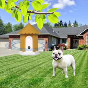 These anti-barking devices automatically detect barking and work by emitting a high-pitched sound heard only by the dog which interrupts their barking.